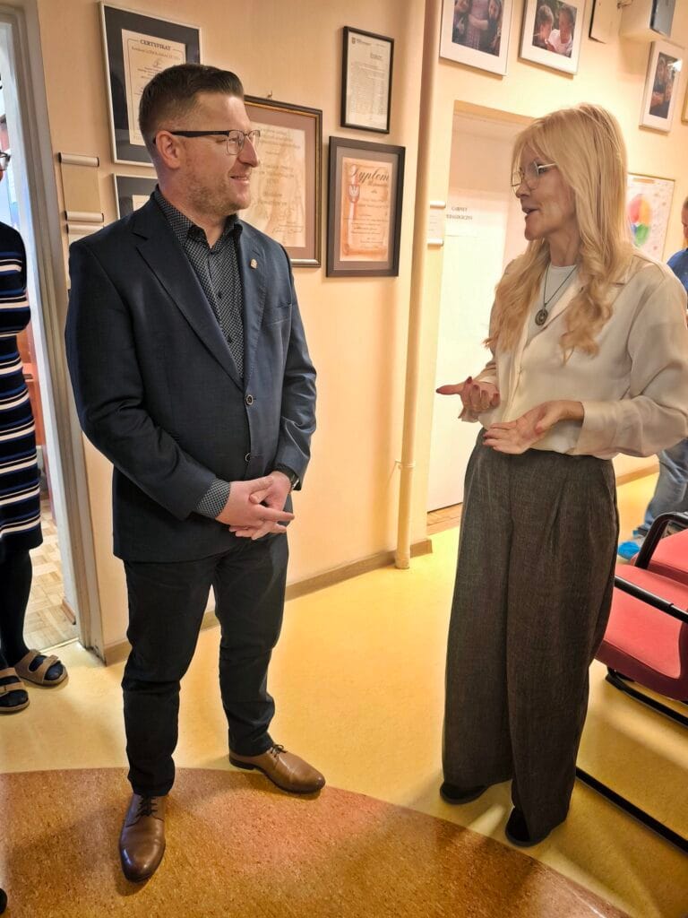 Burmistrz Piotr Krasnodębski wyraził uznanie dla zaangażowania zespołu Fundacji oraz podkreślił znaczenie działań wspierających dzieci z niepełnosprawnościami słuchu.